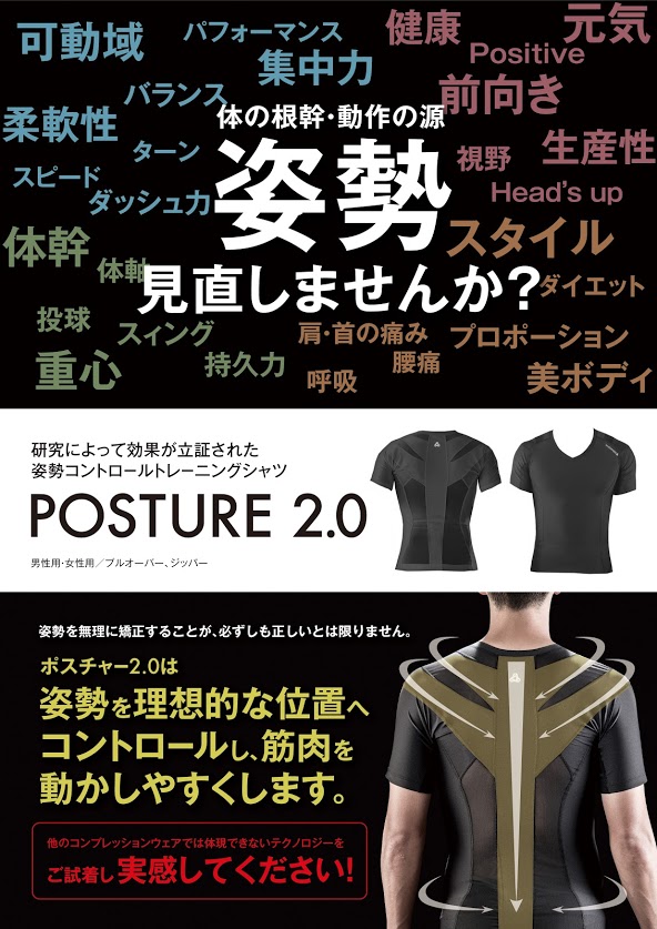 POSTURE2.0は医療機関やスポーツ現場での臨床研究をもとに開発した姿勢コントロールシャツです。
